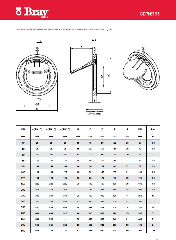 Особливості конструкції затвора Bray серії 95: мала будівельна довжина, мала вага, малі втрати тиску, простота монтажу та надійність у роботі.