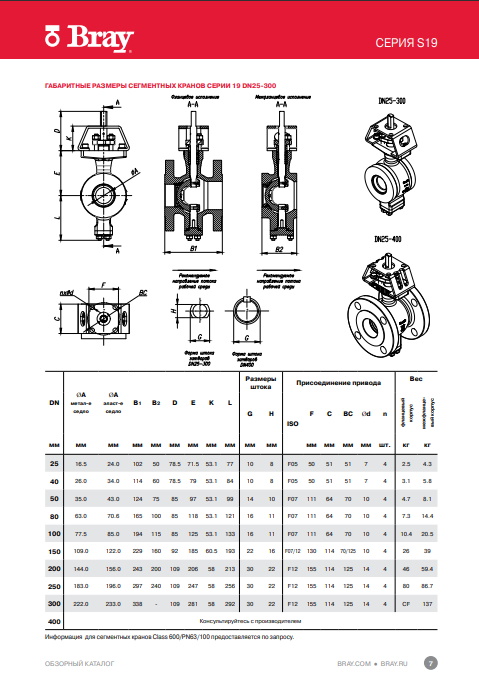 Сегментний кульовий кран серії 19L від Bray поєднує в собі ріжучу здатність ножової шиберної засувки, характеристики регулювання дискового затвора та рівень ущільнення кульового крана в універсальному високоефективному поворотному регулюючому крані, призначеному для регулювання та перекриття. Сегментний кран серії 19L завдяки використанню надміцних матеріалів, призначений для використання в умовах ерозійних та високо абразивних середовищ, які транспортуються під тиском.